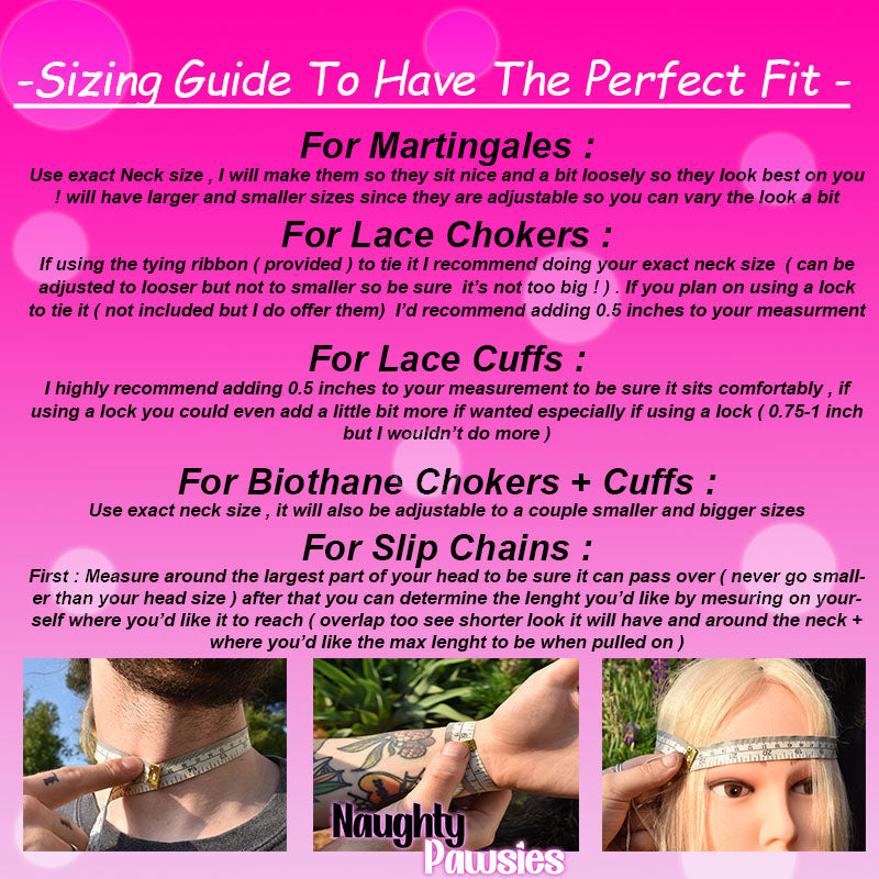 ♥ The best way to measure for your collar/choker is to use a measuring tape around the middle of your neck in a tight but comfortable way
